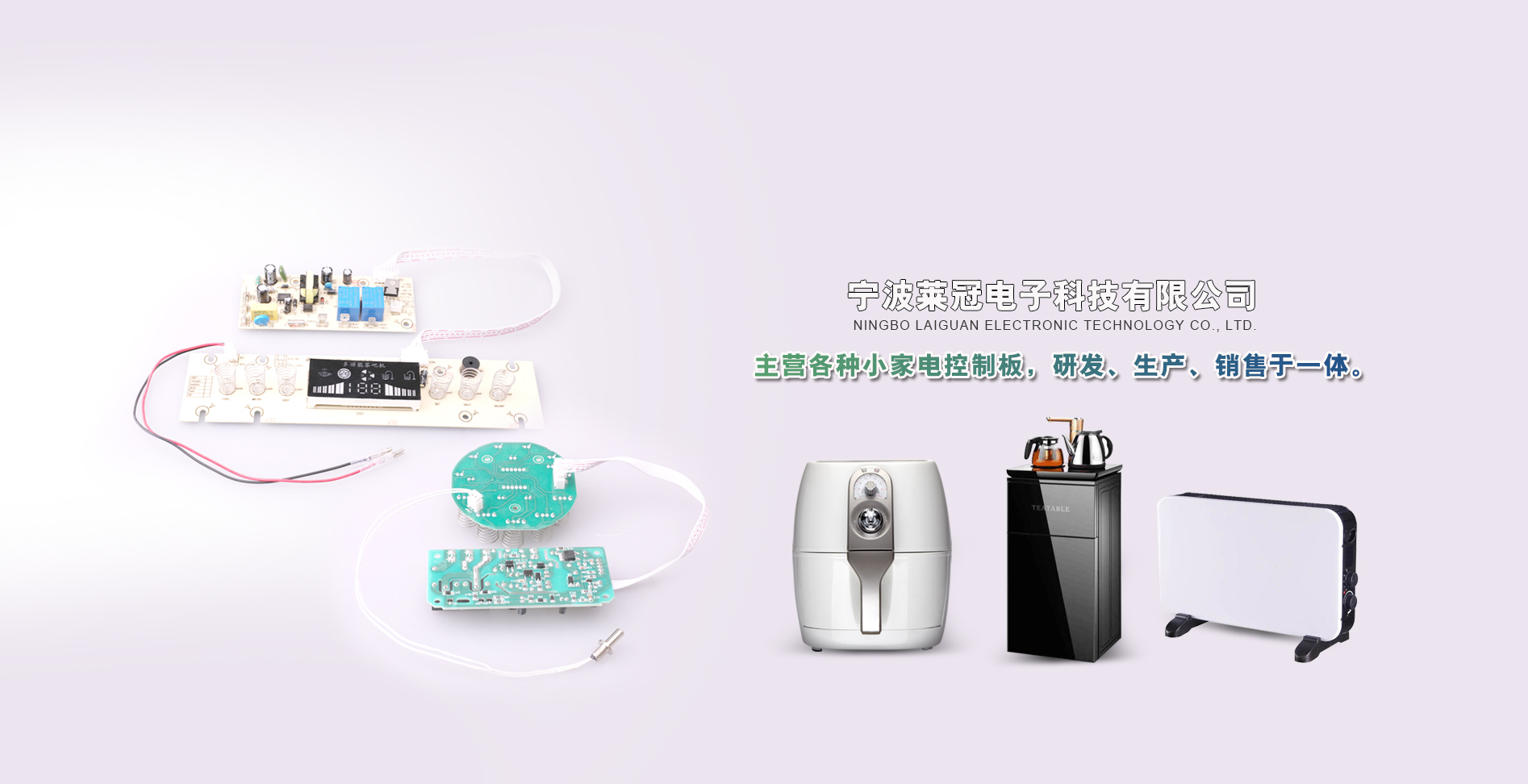 寧波萊冠電子科技是一家專業設計、生產、銷售為一體的各種小家電控制板,主要經營產品:空氣炸鍋、茶吧機、凈水器、電風扇、取暖器、果汁機、碎冰機、料理機、加濕器等等。